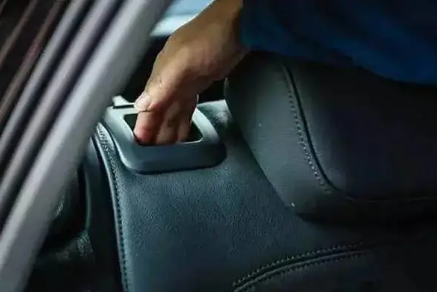 1、逃出第一步就是从前排爬到后排,不要紧张,不能乱跳。爬到车后排,在后窗玻璃的下方找到椅背解锁键,如下图,不同的汽车一般位置也不一样,你可以找找看。